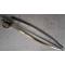 Le fourreau est en tube acier poli main, nickelé avec un anneau. la poignet est en plastique ABS noire, et filigrané laiton. La garde est en laiton poli main avec 3 branches et calotte courte. la lame bancale est en inox, forgée main celon les traditions et polie main, enriron 91cm (le jaune sur la lame est de la graisse de stockage.