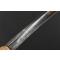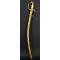 Beau sabre d'enfant achat personnel d'un officier fortuné, modèle luxueux en laiton doré finement ciselé, monture à une branche de garde ciselée de végétaux, croisière au lion couché, demi oreillon à la toile d'araignée de l'état major, quillon courbé en forme de godrons, fusée bois recouverte de plaquettes de nacre avec petits manque, virole et bordure en suite, pommeau à tête léonine. Fourreau de laiton gravé et doré, bracelets décoré en suite, dard en forme de lyre, petites traces de coups, lame courbe gravée à l'acide et bleuie à sa moitié, gorge dos plat et pointe arrondie. Longueur 69cm