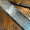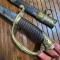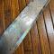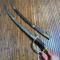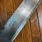 Lame courbe simple tranchant affûtée bien tranchante à pans creux et gouttière, gravée à l'or reste d'or en creux de gravure, la lame ete aussi bleuie mais sans reste, lame forgée à SOLINGEN poinçon de la fleur au dos de lame .