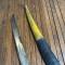 Fusée en corne sans filigrane , monture en laiton ciselé de motifs , lame courbe à simple tranchant quelques oxydations, marquée COULAUX FRÈRES À KLINGENTHAL .