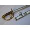 Monture en laiton à trois branches décorées de feuillages, fusée en corne avec un filigranne en cuivre. Elle est du type 1822 français de cavalerie légère.