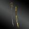 Fourreau à trois garnitures de laiton, cuir apparaissant entre deux attelles latérales.