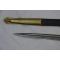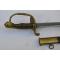 Le fourreau est en cuir à deux garnitures de laiton. Bouton de chape figurant un coquillage. Le dard de la bouterolle en laiton, retient également un décors de coquillage.