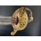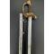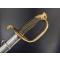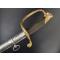 Sabre d'officier supérieur modèle 1855 en bronze doré signé Manceaux à Paris produit de 1856 à 1883. Monture en laiton ciselée et dorée sans accident ni usure particulière, poignée en corne noir filigranée. Lame droite d'officier supérieur à gouttières longue de 860mm. Fourreau fer patiné gris à deux anneaux dans sa longueur. France Second Empire, fines taches d'oxydation localisées.