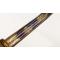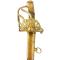 Rare sabre d'officiers des compagnies d'élite de la cavalerie de ligne production précoce vers 1804 pour les grenadiers à cheval, les cuirassiers, carabiniers, et gendarmes d'élite. Monture dite à garde de bataille en laiton, courte calotte godronnée typique du début de l'Empire, fusée bois recouverte de chagrin à filigrane de cuivre torsadé surlié, aucun jeu d'assemblage, rivure intact, long quillon recourbé, entrée de cuvette à la base. Longue lame très légèrement courbée, sur chaque face gravures de trophées d'armes et aigle impériale couronné sur fond bleuie dorée sur ses deux premiers tiers, dos plat double gouttières et pointe à contre tranchant. Fourreau de cuir fort à trois garnitures de laiton décorées au traits et deux anneau de bélière, coups d'éperons sur la bouterolle et dard en fer avec trace d'usage. Lame 92,9cm signée au talon I.C.B. pour Johan et Clemens Boegel à Solingen, longueur totale environ 109cm.