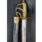 Lame courbe à dos plat et forte gouttière, large au talon de 3.5cm et longue de 61.7cm, quelques traces d'oxydation sans grand dommage. Fourreau du type infanterie en cuir fort noirci poinçonné d'une étoile typique des fabrication de cette époque, deux garnitures laiton, chape à tirant de buffle blanc absent remplacer par une suspente sur le dos disparue (trace d'étain) et bouterolle typique. Cuir en très bel état, couture sans accident. Cravate en laine cousue d'origine. Arme non démontée ni nettoyée, aucun jeu d'assemblage.