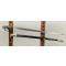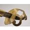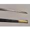 Sabre de cavalerie modèle de 1783 en usage jusqu'à 1801. Forte monture de laiton dans sa patine sans jeu, à branche latérale plate ornée d'une fleur de lys mutilée sous la révolution en 1792, quillon en palmette poinçonné d'un V de vérifie de la Manufacture de Versailles, courte calotte percée d'un trou pour passage de dragonne, poignée de bois gainée de cuir à filigrane et renforcée d'une virole de laiton, poucier en cuir absent, fusée bois non percée pour le passage de dragonne. Lame de 975mm à double gorges jusqu''à la pointe dans le prolongement du dos plat, poinçons frappés sur le talon B de Bisch (contrôleur 1783 à 1791), belle patine grise sans oxydation. Fourreau postérieur de cuir fort à garnitures laiton: chape à bouton de laiton de10 cm et bouterolle de 12 cm. Belle arme en excellent état de conservation général.