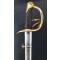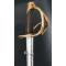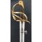 Nouveau modèle de sabre amélioré et allégé du précédent créé en 1802. Monture de laiton à quatre branches, plateau à bordure destiné à dévié les coups de pointe, calotte à bourrelet, poignée de veau noirci et filigrané de laiton. Lame à dos bombé marqué de la "Manufacture Royale de Klingenthal février 1822", longue de 98cm pour 3,3cm de talon avec double pans creux et pointe symétrique, poinçons encore visibles. Fourreau fer à deux anneaux et dard symétrique. La longueur de la lame initialement de 100cm pouvait être réduite à la demande de son propriétaire qui le maniait.