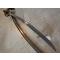Sabre de cavalerie fabrication Manufacture de Châtellerault 1851 ave le nom ( R. ADINES )propriétaire gravé sur fourreau,fourreau de sabre ! ni cabosser, ni oxydée, ni rouille, seulement dans un endroit sur le dos de fourreau légèrement la chrome qui s'est effacé vraiment léger. La lame du sabre n'est pas rouillée, il n'y a pas d'oxydation, seulement à un endroit, comme vous pouvez le voir sur la dernière photo, il y a un coup visible lors de la bataille de la Cavalerie, un sabre avec le nom du propriétaire gravé, qui porte également une histoire passée qui a certainement été au combat. Un collectionneur comprendra et saura ce que c'est.,seulement la dragonne sabre ete répare,apparemment il était coupé dans le combat. Longueur lame 90 cm Longueur sabre 104 cm International shipping yes with tracking and receipt number, and of course your colleague will be well protected against shocks.