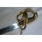 Lame courbe de 810 mm. Monture avec arc de jointure et trois branches en laiton, important plateau fromant croisière. Pommeau bonnet phrygien, à longue queue et virole en laiton.