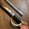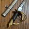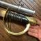 Reproduction d'un sabre de cavalerie U.S , monture laiton à trois branches de garde, filigrane laiton, cravate type cuire, lame courbe de 84 cm , fourreau fer à deux anneaux.