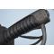 Sabre de grosse cavalerie de la Gendarmerie de France de 1780-1788 assimilé à la Maison du Roi, monture en fer bronzé inspirée des Wallonnes du début du XVIIIè, multi branches à trois arc de jointure réunis deux par deux par deux branches secondaire oblique. Calotte plate à queue, poignée non ficelée recouvert de veau et filigranée d'un fils de fer, virole basale, plateau percé à couvre chape dépourvu de quillon sans aucun accident ni ancienne réparation. Lame à dos longue de 95cm, double gorges à arrête médiane et contre tranchant, gravée à partir du talon de trophée, "VAINCRE OU MOURIR " en cursives et au verso d'un trophée, des Armes Royales et " VIVE LE ROY ", fines traces d'oxydation vers la pointe. Fourreau en cuir postérieur à 2 bonnes garnitures en fer bronzés décorés au traits. Objet d'exception parfaitement homogène et d'authenticité indiscutable en provenance de la Collection personnelle de Christian Ariès (1909-1994) historien et collectionneur vendu par son petit-fils en 2019.