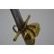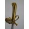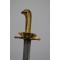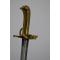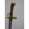 Sabre de dragon des Volontaires de Saxe (1743-1751) puis de Frieze (1751-1755)- SF. Monture de laiton monobloc à croisière, garde formant une coquille,poucier, poignée moulée en deux parties à pommeau figurant une tête d'aigle percée d'un passage d'une dragonne. Lame courbe à dos plat gravé d'une longue flèche, pans creux et gouttières longue de 88 cm. Marque d'un VII sur le dos répété sur le dessus de la croisière. Les premiers tiers de la lame sont ornées de gravures identiques sur les deux faces partiellement effacées " Maupetit fourbisseur de la maison du Roy, au duc d'Orléans au bas du pont St Michel à Paris " au dessus gravés des cavaliers chargeant surmonter de l'inscription " Dragon" puis des motifs végétaux. Rarissime ! deux exemplaires connus, ancienne Collection Christian Ariès