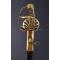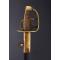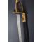 Arme forte et rustique créée à l'intention des Grenadiers à cheval institués dans cette garde, dessiné par Boutet et assemblé à la manufacture de Versailles qu'à partir de 1798 à 1800. Exemplaire plus précoce frappé au talon du faisceau de licteur et du poinçon AP pour Arsenal de Paris. Monture de laiton dans une belle patine homogène en demi-panier à plateau ajouré de type montmorency et forte coquille ajourée d'une forte palmette rejoignant la branche principale de garde par deux branches secondaire, fusée gainée de cuir filigrané de laiton, aucun jeu et rivure intouchée, forte calotte à longue queue pour la grosse cavalerie. Lame identique au modèle de Maréchaussée 1784 ou de Carabiniers 1777, droite et plate à pointe dans le prolongement du dos (épointée), longue de 96,8cm dans sa finition d'origine sans usure ni oxydation. Fourreau de cuir fort d'origine à deux garnitures de laiton patinées, chape à bouton pour le port au baudrier et bout à talon de fer. Beau sabre dont il existe très peu d'exemplaires, patine du laiton, usure de la basane sur la poignée, gravures sur la lame apocryphes (attributs militaires, fleur de lys, inscription "Maréchaussée des monnoyes)