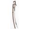Monture en acier bruni. Garde à une branche repercée d'un losangique et à palmettes terminée en partie haute par une large palmette ajourée fixée à la calotte., noeud de corps à deux importants oreillons ovoïdes, quillon cannelé en forme de bouton. Calotte à courte queue. Fusée en ébène finement sculptée de rubans imitant un cannage séparant de petits losanges en relief. Lame courbe à pans creux, longueur 78,4 cm, largeur au talon 2,8 cm ; elle est gravée et dorée sur son premier tiers de trophées militaires et floraux, à fond bleui ; dos signé « Pierre Guillaume Knecht fabriquant à Solingen ». Fourreau en acier bruni, entrée de cuvette soulignée par une moulure avec un petit anneau sur le bord intérieur du fourreau. Deux bracelets de bélière à décor géométrique avec pitons et anneaux en acier bruni, bouterolle à godrons, le dos du fourreau est signé en partie haute « Boutet / Directeur Artiste / Manufre / à Versailles ». France. Directoire - Premier Empire. Bon état, quelques oxydations, les couleurs de la lame sont passées.