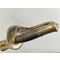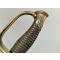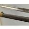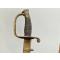 Sabre d'adjudant d'infanterie modèle 1845 fabrication privé, monture laiton ciselées de fleurs, belle patine, léger jeu, poignée corne arrondie et filigranée de cuivre torsadé. Lame patinée grise sans oxydation, fourreau cuir à garniture laiton d'origine, légèrement déformé au centre.