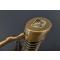 Forte monture en laiton rosé (cuivreux) en dorme de coquille à trois branche ornée d'une forte grenade de l'élite puisque depuis 1791 ils sont titrés "Grenadiers des troupes à cheval", calotte à queue et virole à poucier en cuir, poignée gainée de cuir d'origine et filigrané d'un fil de cuivre simple. Quillon et arc de jointure poinçonnés, aucun jeu à la garde, rivure intact. Lame forte, plate à dos à pointe légèrement relevée, longue de 910mm, légère diminution due à son usage au combat, large de 32mm, marquages du régiment sur chaque face "Carabiniers de la République Françoise" avec grenade enflammée côté talon et bonnet phrygien côté pointe, poinçon de Bisch coiffé d'un bonnet phrygien utilisé de 1792 à 1798, fines traces d'oxydation, pointe restée dans le prolongement du dos. Fourreau avec son cuir d'origine encore bien souple, traces d'usure avec bonnes coutures, 2 garnitures en laiton découpées en suite, cuir frappé N15 sous la chape à bouton de suspente. Très rare sabre de carabiniers à découvrir en très bel état de conservation, sans accident, parfaitement homogène et authentique.