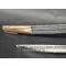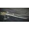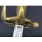 Garde laiton à 3 branches robustes qui se détachent des pontas, fort pommeau ovoïde à bouton de rivure, fusée quadrangulaire en bois entièrement filigranée d'un double fil de laiton torsadé et virolés, belle patine. Bons poinçons de réception encore bien nettes. Lame légèrement courbé à pan creux pour les Dragons longue de 850mm, épaisse de 1,3cm, large au talon de 3.1cm, lame forgée par B Daniels Kirschbaum fabriquant d'armes blanches de la Marque au Raisin à Solingen gravé sur chaque talons dans un encadré puis gravée au tiers d'un chérubin à la corne d'abondance ' Vive le Roy' entouré d'une frise de fleurs et d'attributs militaire et surmonté d'un cavalier sabrant, de l'autre face l'inscription ' Louis le Bien Aimé' entouré de frise de fleurs attributs militaire et d'un second cavalier sabrant, traces d'usure et d'oxydation, gravures bien conservées. Fourreau cuir postérieur à authentique garnitures en fer à pitons et anneaux de suspente et une bouterolle en laiton patiné à dard en fer.
