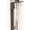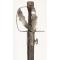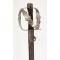 Par le règlement uniforme du 25 avril 1767, fabrication simplifiée de la monture en deux parties au lieu de trois en usage de 1768 à 1781, monture en demi panier à branches de fer plat l'une découpée en croix formant les deux branches de garde, l'autre, oblique, assurant leur liaison, branche perpendiculaire à la croisière se termine par un petit plateau protégeant le pouce, quillon plat frappé en dessous du régiment I. Fs. N°32, poignée bois recouverte de cuir filigrané d'un fil de fer, calotte courte à dôme de rivure, aucun jeu d'assemblage. Lame droite longue de 97,6cm très légèrement épointée, poinçonnée au talon du même "R" à la grosse couronne, belle patine grise sans corrosion. Fourreau de cuir fort à trois garnitures, chape et bracelet de suspente en fer, bout de laiton à dard en fer.