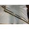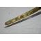 Le fourreau est en fer à trois longues garnitures en laiton. Il y a des coups d'usage sur la bouterolle. Je suppose que la partie fer de ce fourreau devait être bronzée, cette partie en fer est patinée avec quelques chocs d'usage, mais sans altération du métal, pas de piqûres.