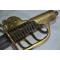 La monture de type Garde de Bataille est en laiton, la coquille possède une grenade rapportée. La fusée de profil anguleux est recouverte de cuir avec un double filigranne en laiton. La garde, arc de jointure, branches et pommeau retiennent un décors végétal, léger et présentant une usure d'usage.