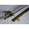 Le fourreau est en fer à trois longues garnitures en laiton. Il y a des coups d'usage sur la bouterolle. Je suppose que la partie fer de ce fourreau devait être bronzée, cette partie en fer est patinée avec quelques chocs d'usage, mais sans altération du métal, pas de piqûres.