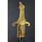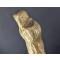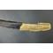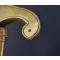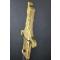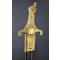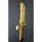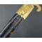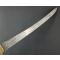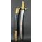 Sabre des soldats canonniers des Gardes-Françaises de la Maison du Roi, en 1757 tous les régiments d'infanterie y compris celui des Gardes-Françaises, reçoivent un canon d'accompagnement "à la suédoise", peu après en 1762 cet équipage sera supprimé et néanmoins maintenu dans les faits jusqu'à la Révolution. de morphologie similaire au modèle de l'artillerie de 1767 la monture en laiton fondu en forme de tête d'aigle soigneusement ciselée, croisière plate et symétrique ajustée et garnie d'un couvre chape, rivure intact et sans jeu d'assemblage, reste de dorure en creux, poinçon su quillon. Lame plate à dos, courte de 53cm et légèrement courbée, terminée par un contre tranchant et une pointe en langue de carpe, fines traces d'oxydation. Fourreau de cuir fort a deux garnitures de laiton découpées en accolades et décorées aux traits, chape à bouton, dard en laiton. Longueur totale 69cm