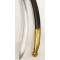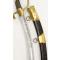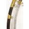 Fourreau en bois gainé de cuir ciré noir, garnitures en laiton dont chape, bracelet central et bouterolle à dard en laiton. Pitons d'anneaux de bélières et anneaux de suspente en laiton, dans une patine homogène.