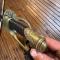 Cravate en cuir , aucun jeu , micro coup bout de lame .