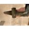 Poignée en relief à motif d'une rangée de flèches pointes vers le bas et terminées en forme de tête d'aigle avec croisière importante en volume rectangulaire.