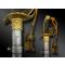 Lame à pan creux, marquée sur un pan : « GARDES DU CORPS DU ROI » encadré de deux fleurs de lys et d’un trophée, le second pan figure un soleil, les Armes de France couronnées et un trophée.