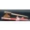 La lame de plus de 500 ans a subi des polissages successifs et il reste néanmoins une toute petite ligne de trempe de type suguha. Le grain du damas est bien visible. Habaki en cuivre recouvert d'une feuille d'or ouvragée.