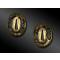 Menuki en cuivre représentant un héron et une tortue, rehaussés à l’or.