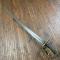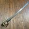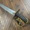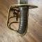 Sabre à la Monmorency à garde en laiton ajouré au lion grimpant et au coq (2 craquelures ) , lame courbe à simple tranchant à la Montmorency, à deux poinçons à sa base . Fusée recouverte de basane usure filigrane cuivre distendu .