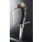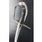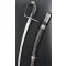 Monture en fer à une branche de garde, croisière à double très long oreillons terminée par un quillon droit, fusée en bois recouverte de chagrin, très arquée à la hongroise et rivetée à la soie par deux rivets décorés de fleurettes en fer soutenue par une calotte à courte queue clouée au dessus ainsi que sur le dos. gravures de quatre "V" stylisé sur le dos de la calotte, aucun jeu d'assemblage parfaitement d'époque, trace d'une ancienne réparation par brasure à jonction de la branche et de la croisière.