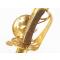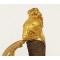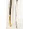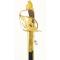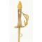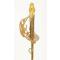 Sabre révolutionnaire en bronze finement ciselé et doré, modèle au lion grimpant tenant un étendard au bonnet phrygien les pattes écrasant un dragon posé sur un canon, branche de garde légèrement évidée formant godrons, plateau à jour figurant un soleil, quillon en forme de palmette godronnée. Longue calotte au casque empanaché, fusée bois entièrement filigranée, virole basale. Lame à dog et gouttière longue de 755mm dans sa finition d'origine patinée d'usage, sans inscription. Fourreau bois à trois garnitures de laiton découpées, alèses et cuir noirci, deux anneaux de bélières pour le port au ceinturon à cheval. Longueur totale 92cm.