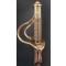 Sabre d'officier d'Artillerie modèle 1822 transformé 1899 signée Coulaux & Cie Klingenthal sur le dos de la lame courbe allégée, longueur de 90cm, fusée en corne filigranée Monture en laiton cuivreux ciselées de rameaux, calotte courte à dôme de rivure. Fourreau à un bracelet en tôle de fer nickelé recouvert de cuir, tampon de fabricant plus lisible, quelques traces de coups visibles sur les dernières photos à faire défiller.