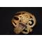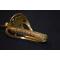 Monture coquille exceptionnelle en bronze doré, aux monogramme P II surmonté de la couronne Impériale. Pommeau à tête de lion longue queue représentant la crinière. La fusée est en galuchat, avec filigranne. Magnifique virole à trois registres, dont le centre est superbement guilloché.