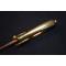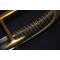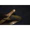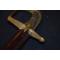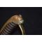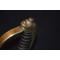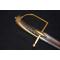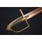 Monture en laiton à la Hussard, garde monobranche, croisière et pommeau à longue queue en laiton avec partie supérieure en tête de chien de mer. Fusée recouverte de cuir, filigrannée.