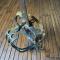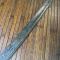 SABRE révolutionnaire Montmorency, à garde tournante; en laiton travaillé, à deux branches dont une mobile système complet et fonctionnel , petit quillon en palmette. fusée de bois ENTIÈREMENT recouvert filigranée de cuivre; lame légèrement courbe à simple tranchant avec reste d'or jusqu'au premier tiers, poinçon dans un cartouche au ricasso à déchiffré , oxydation , léger manque sur une branche.