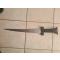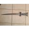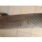 SABRE TAKUBA - Poignée plate et garde rectangulaire recouverte de cuir noir avec décor au repoussé. Lame de 41 cm avec décors sur les 2 faces. Le fourreau est en bois recouvert de cuir noir avec le même décor que la Poignée, terminé par une boule en cuir. Avec une longueur totale de 62 cm, cet arme traditionnelle de la région du NIGER, était utilisee par les guerriers Touaregs. Pièce "IMPOSANTE" qui ravira un connaisseur!