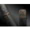 Tsuka ito en bois, recouvert de cuir, tressée de soie marron.