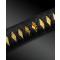 Fuchi et kashira en shakudo, signé Kikuoka Mitsuyuki, ciselés d’un arbre aux feuilles d’or et de cuivre ; gravés trois cervidés dorés.