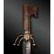 Poignée en bois, recouverte d’une plaque de cuivre sur le haut.