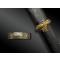 Kuri gata à double bracelet en laiton, ciselée d’une superposition de fleur de chrysanthème, fleur de cerisier, feuilles et bourgeons ; anneau de bélière.