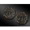 Menuki en laiton représentant des faisceaux d’armes, composé d’un kabuto, un mempo et un katana.