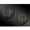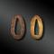 Menuki en cuivre recouvert de shakudo représentant deux fleurs aux pétales rehaussées d’or.