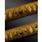 Tsuka ito en bois, recouvert de galuchat, tressée d’un Ito en soie jaune.