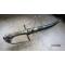 Arc de jointure courbé , un peu tordu ou choc mais c'est peu visible (une fissure infime visible dessous la garde) . Jus d'origine , non vu en collec , Pas de jeu de la poignée. Lame légèrement oxydée à pan creux et goutière qui court le long. Elle est légèrement courbée .