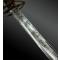 Lame demi-courbe à pan creux et gouttière dorsale au fort, gravée de motifs floraux et feuillagés, poinçonnée : « MR » dans un ovale.